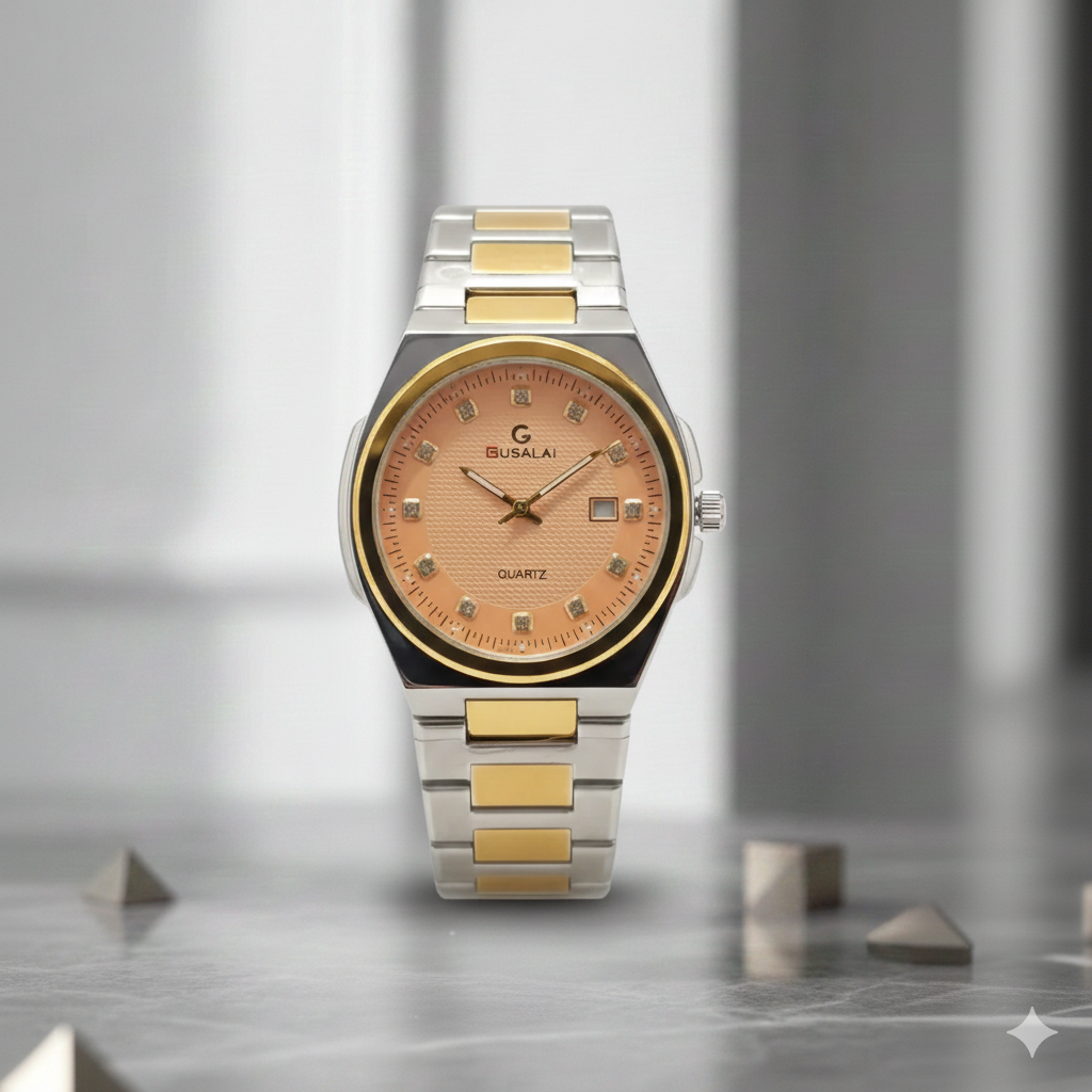 GUSALAI men's analog quartz watch, featuring a distinctive design with a black dial and a...